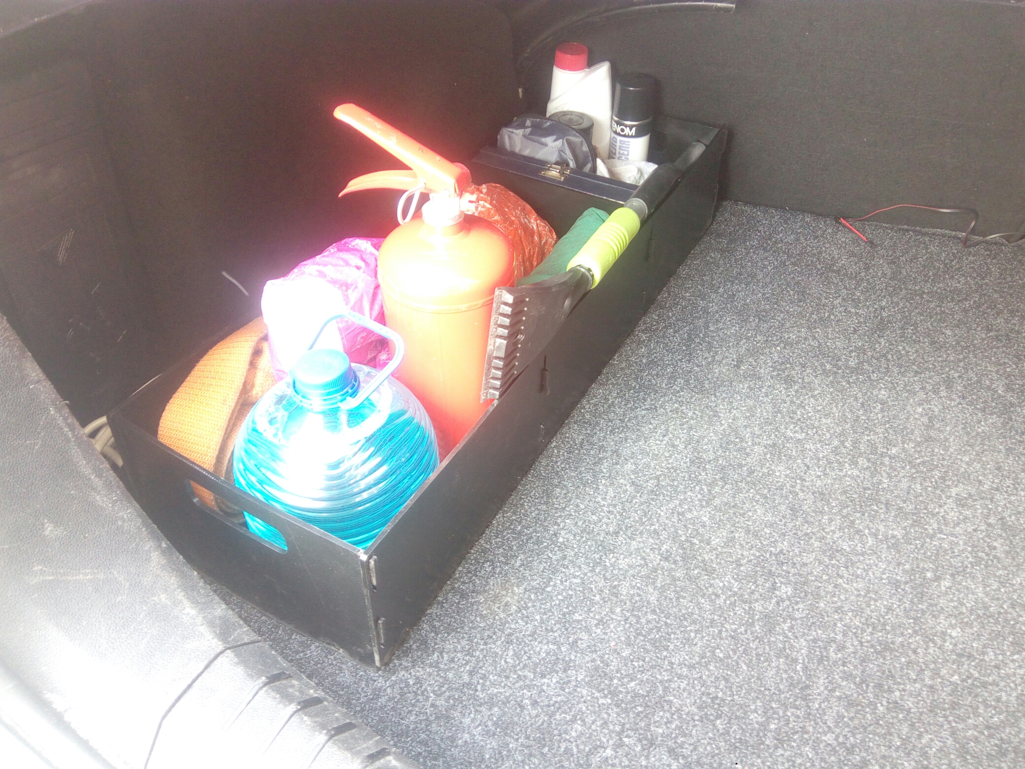 Основной идеей было сделать жёсткий , креативный и удобный органайзер, который вместит всё, что до этого было распихано по углам, закреплено резинками и возилось в различных коробках и строительных ящиках, не предназначенных изначально для автомобилей.
