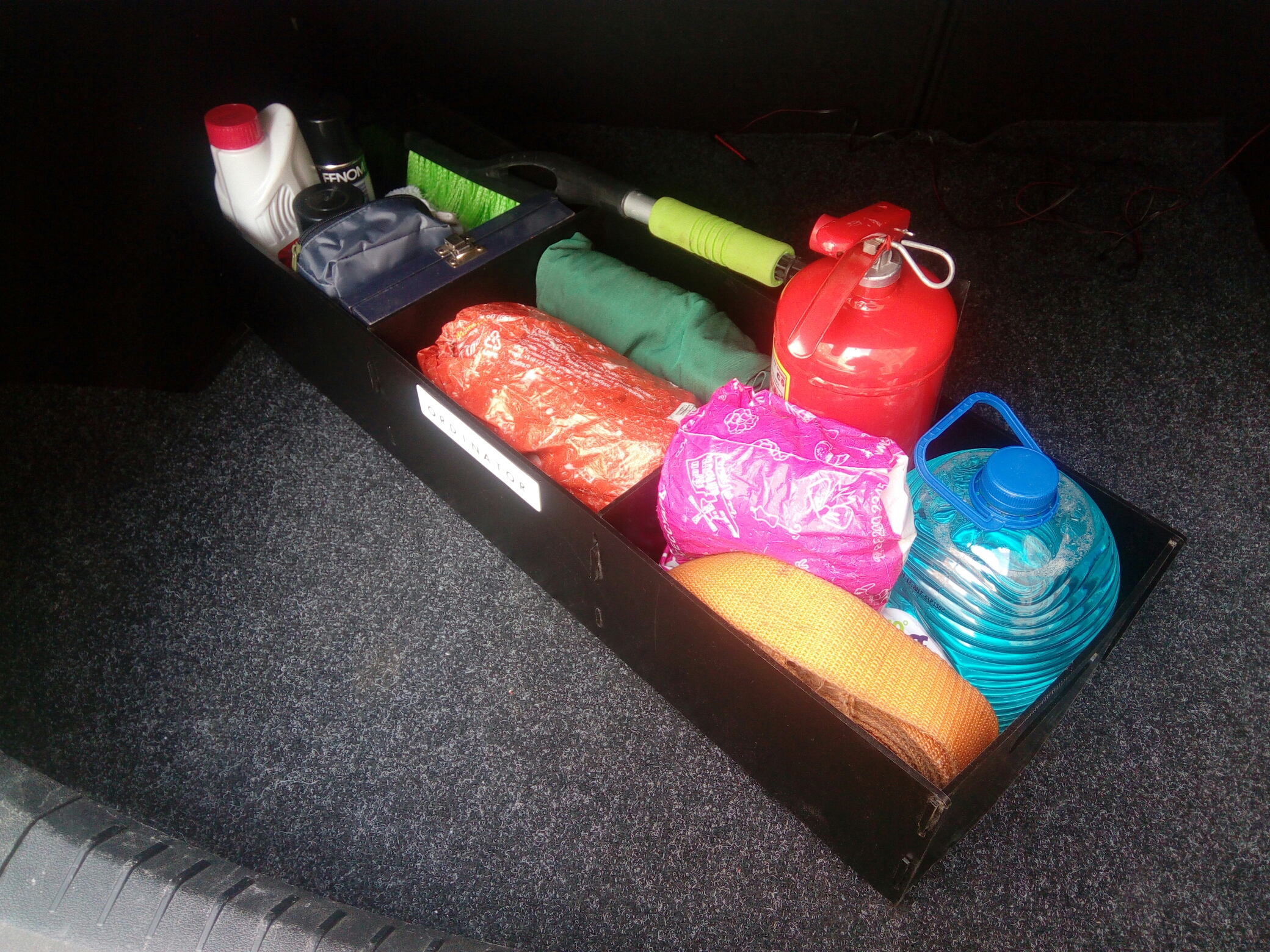 Основной идеей было сделать жёсткий , креативный и удобный органайзер, который вместит всё, что до этого было распихано по углам, закреплено резинками и возилось в различных коробках и строительных ящиках, не предназначенных изначально для автомобилей.