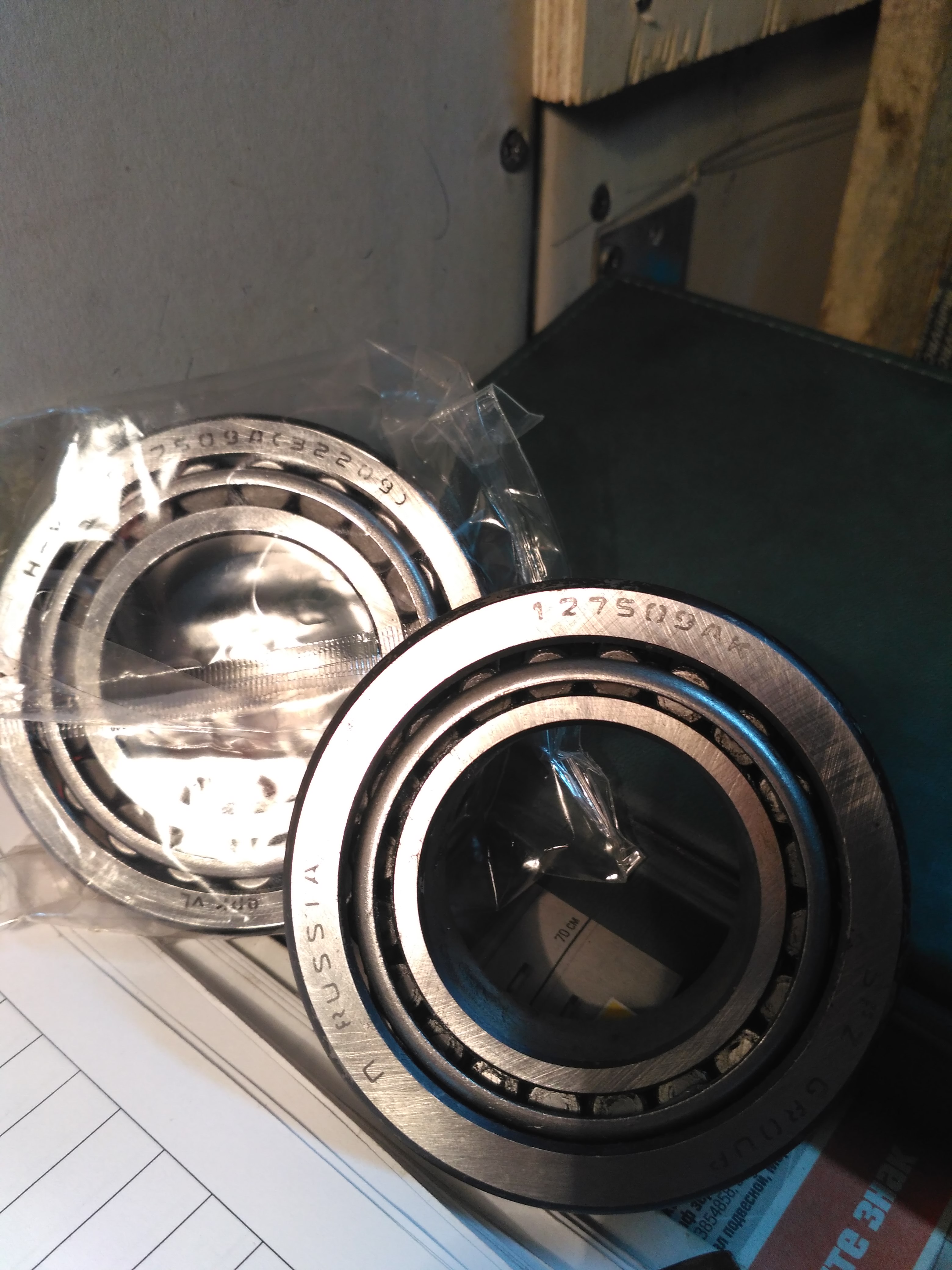 Тот что ближе 7509ак наш родной - стандартные ролики - снаружи в ступицу проходит.Тот что сзади 7509а - ролики увеличенные ,( внешняя обойма тоньше)- в ступицу снаружи не пройдёт. Попытка собрать ступицу на этих усиленных подшипниках без токарки безуспешна. Оба VPZ-шные.
