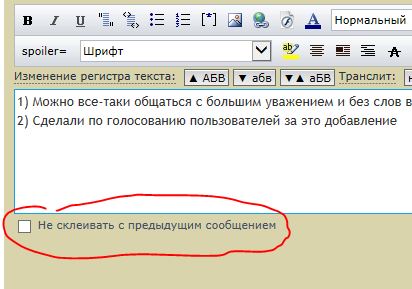 О! Не заметил такой галочки! :)3) При написании можно не склеивать с предыдущим сообщением.