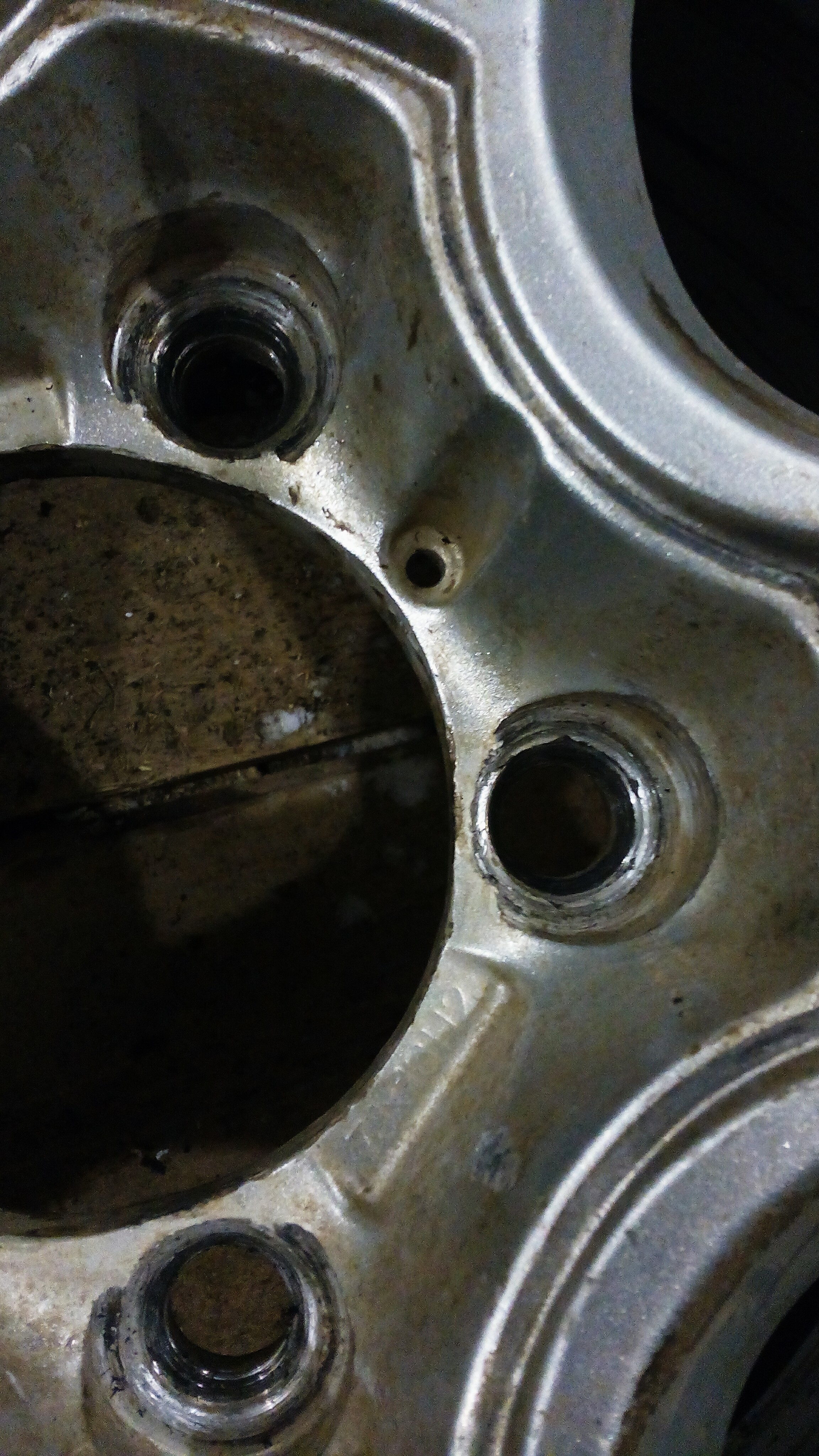 на самом деле, дело в литье, металл мягкий, и затягивая гайки мы обычно тянем до усери, в результате 5 маленьких отверстий выдавили часть металла в сторону большого центрального отверстия