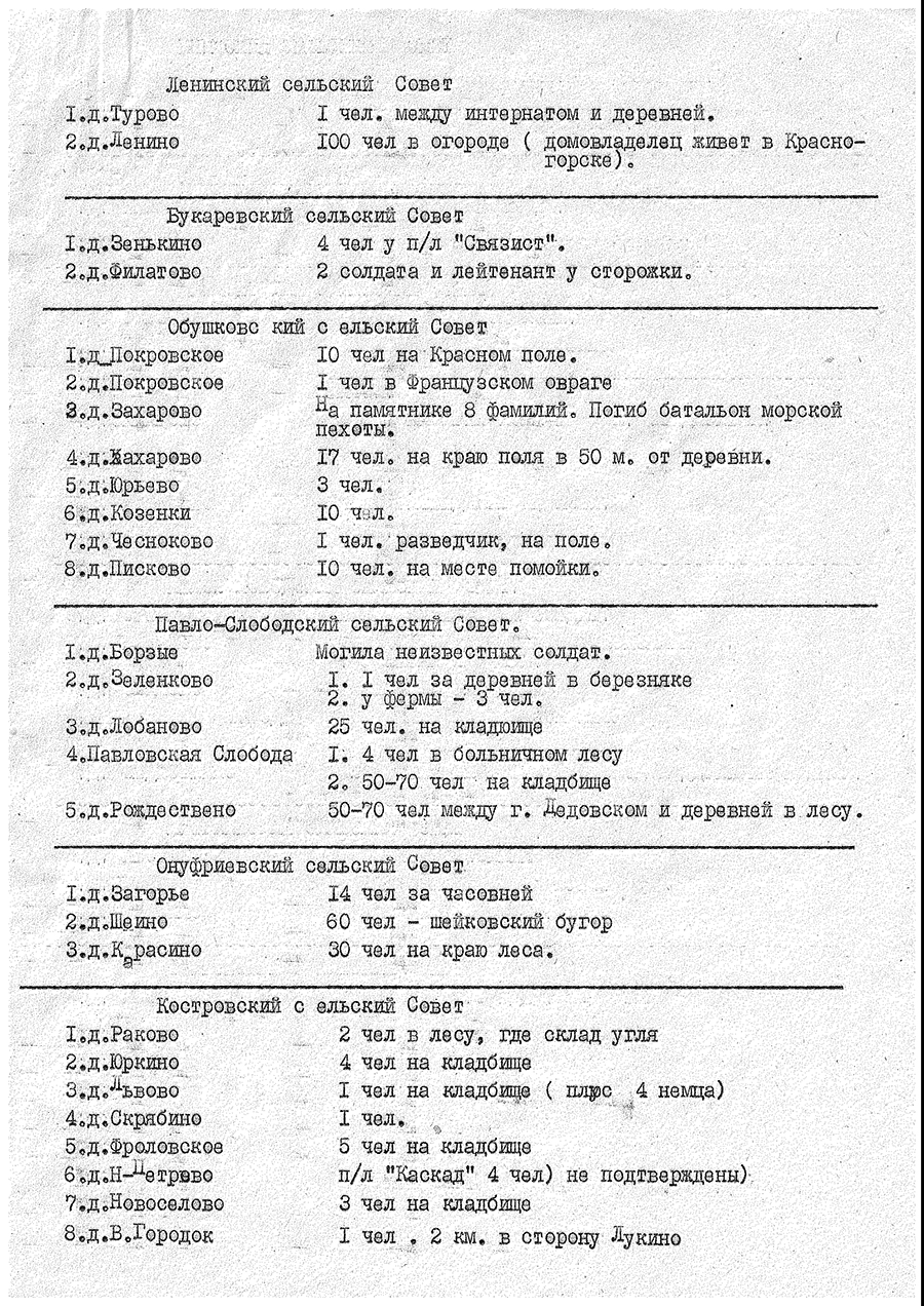 Они составлены истринскими поисковиками в 1989 году ( поисковый отряд "Поиск")